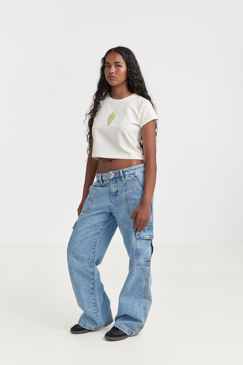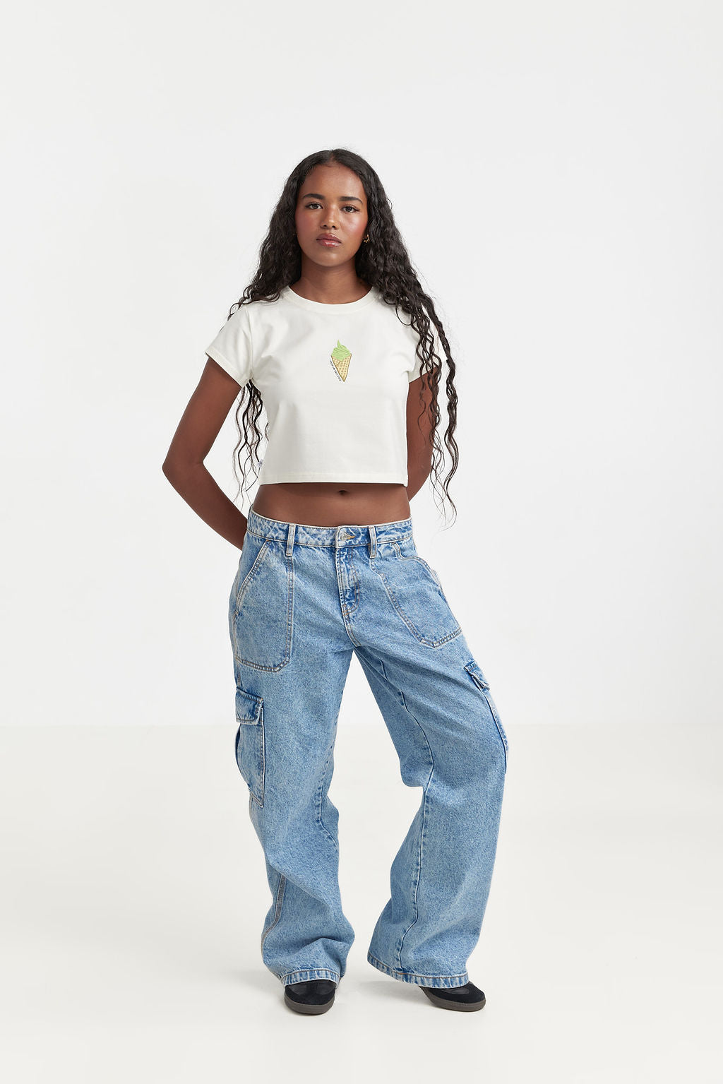 - 伸縮性のあるフィット感のあるクロップドベビー T シャツ